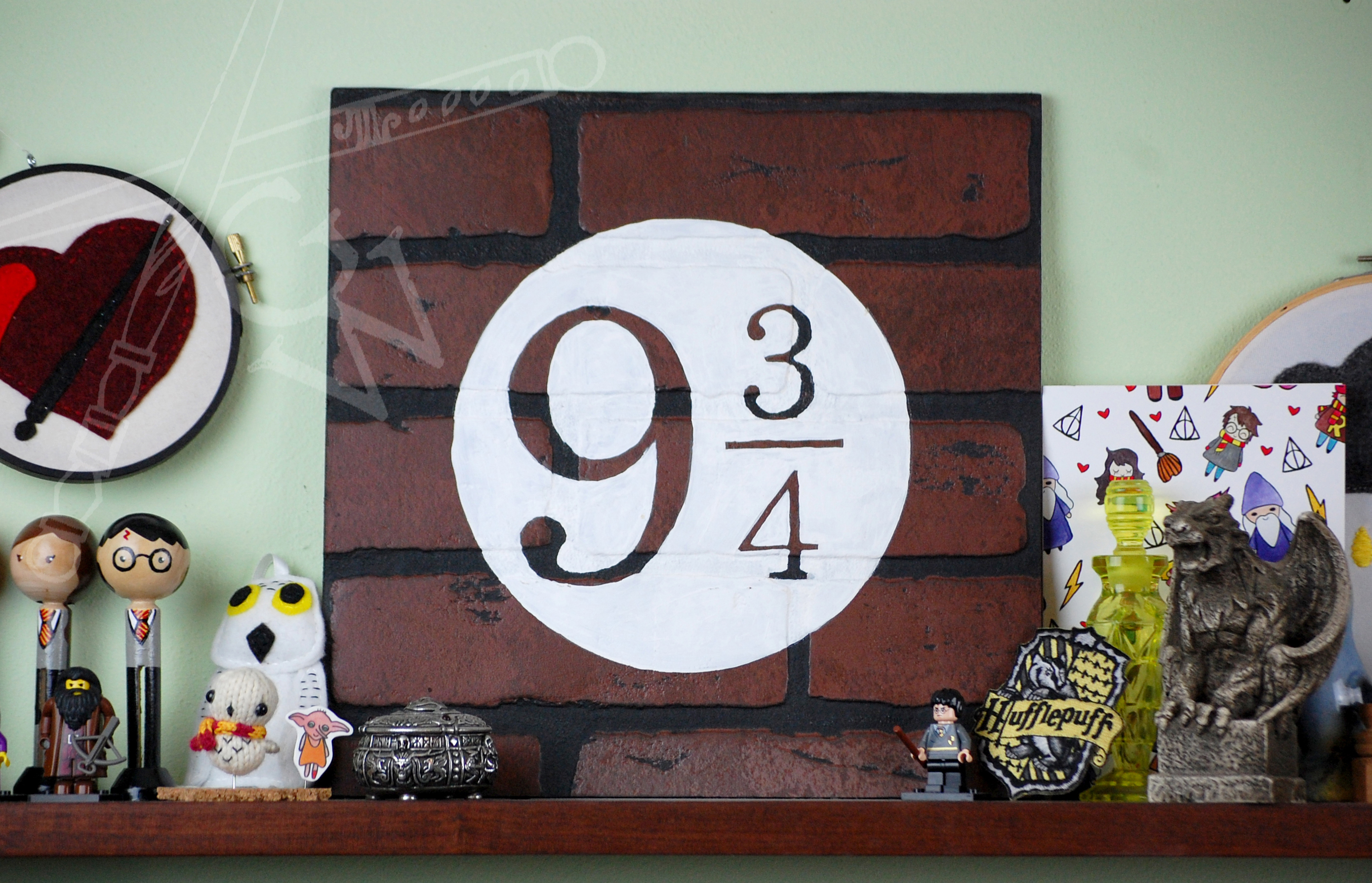 Hand painted with white acrylic on Brick textured 12 x 12 inch Masonite this sign is a perfect discreet wall decor for every Potterhead. Whether you choose to put it on a shelf as is or hang it on your wall you can turn any room in your house to a portal to King's Cross.